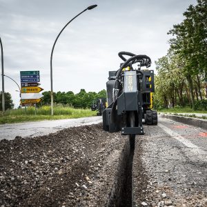 Máquina accionada teledirigida, multifuncional, de alta potencia y productividad para uso en múltiples operaciones como la excavación de mini y microzanjas. Excavación con cadena, fresado de asfalto, limpieza de carreteras etc. Gracias a su enganche rápido, accionado hidráulicamentea través de control remoto, la Multifunction 75 E es una máquina para innumerables aplicaciones.